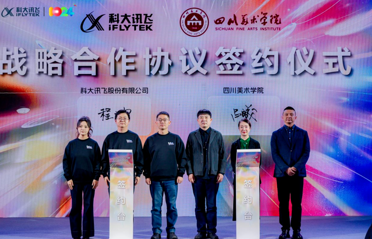 2025年11月6日,科大讯飞股份有限公司(以下简称“科大讯飞”)与四川美术学院战略合作签约仪式圆满举行,标志着双方正式建立战略合作伙伴关系。四川美术学院设计学院院长吕希教授和科大讯飞人工智能娱乐事业群执行总裁程坤代表双方签署了协议。四川美术学院党委常委、副院长段圣峰教授,设计学院副教授任宏伟,科大讯飞副总裁闫亚鲁,以及科大讯飞输入法事业部副总经理兼Epic Universe总监陆杰出席并见证了签约仪式。