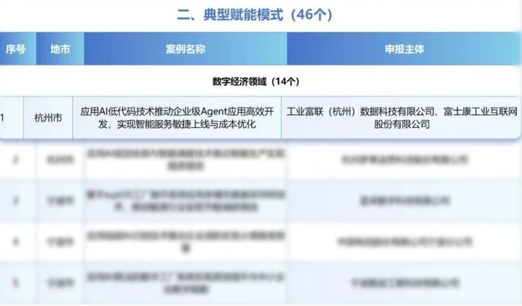 近日,工业富联凭借“应用AI低代码技术推动企业级Agent高效开发,实现智能服务敏捷化上线与成本优化”项目,成功入选浙江省2025年首批人工智能赋能制造业典型案例。
