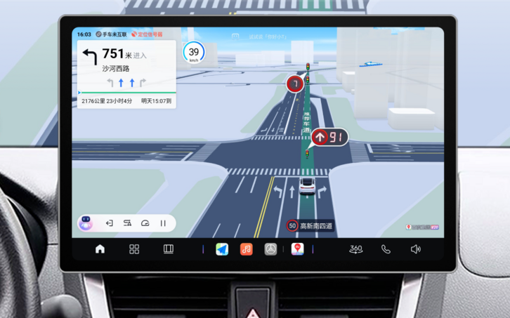 车机搭载紫光展锐7870顶级AI芯片,配合8+256G超大内存组合,提供强劲算力支持。芯片性能跑分超越部分新势力电车芯片,实现性能与功耗的完美平衡。无论是多任务处理(如导航、音乐播放、AI语音助手)还是运行大型应用,车机都能保持流畅不卡顿。即使长时间使用,也不会出现内存不足导致的操作延迟或应用闪退问题,彻底解决传统车机“卡顿、反应慢”的痛点,带来丝滑流畅的智能交互体验。 二、精准导航,安全出行更高效